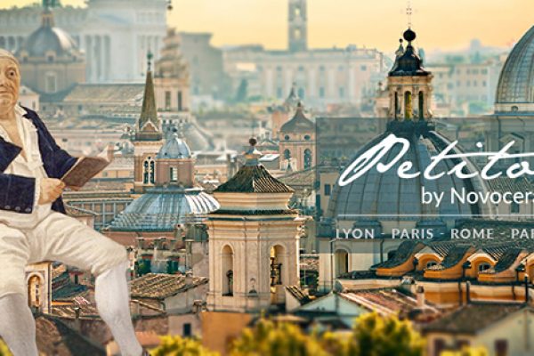 Parmi les œuvres majeures de Petitot, l’artiste qui a inspiré notre nouvelle collection en grès cérame coloré dans la masse, « Mascarade à la Grecque », un recueil de gravures présentant non sans humour, le style néo-classique dit « à la grecque ». 9 planches gravées à l’eau-forte par Benigno Bossi représentant des personnages habillés de pièces détournées d’architecture et d’ornements, qui assemblées entre elles construisent un costume loufoque : pyramide, pied de colonne, corne d’abondance, tores de lauriers, colonne cannelée…