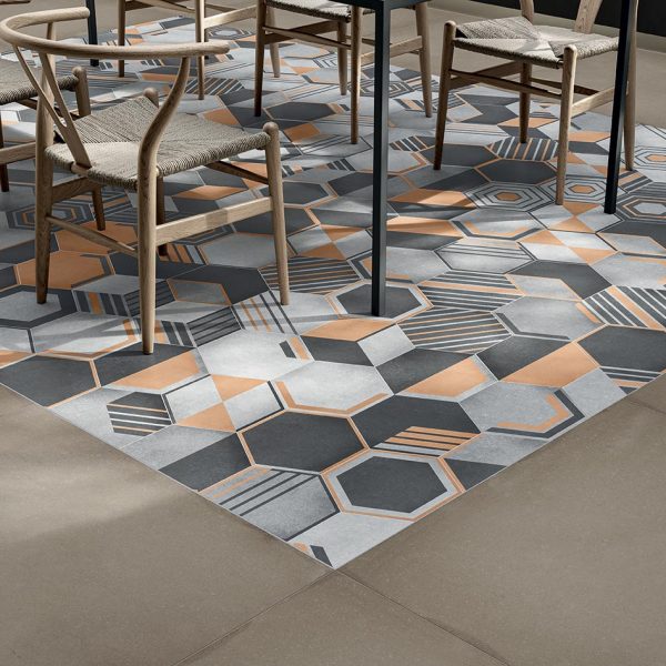 Populaire pour être la plus ancienne matière de carrelage, le carrelage hexagonal effet terre cuite apportera du caractère à votre pièce avec son aspect plutôt rustique. Avec sa superbe couleur terracotta, ce type de revêtement est également fortement apprécié car il s’avère très facile à entretenir étant donné qu’il ne nécessite pas de traitement spécifique contrairement aux carreaux en terre cuite.