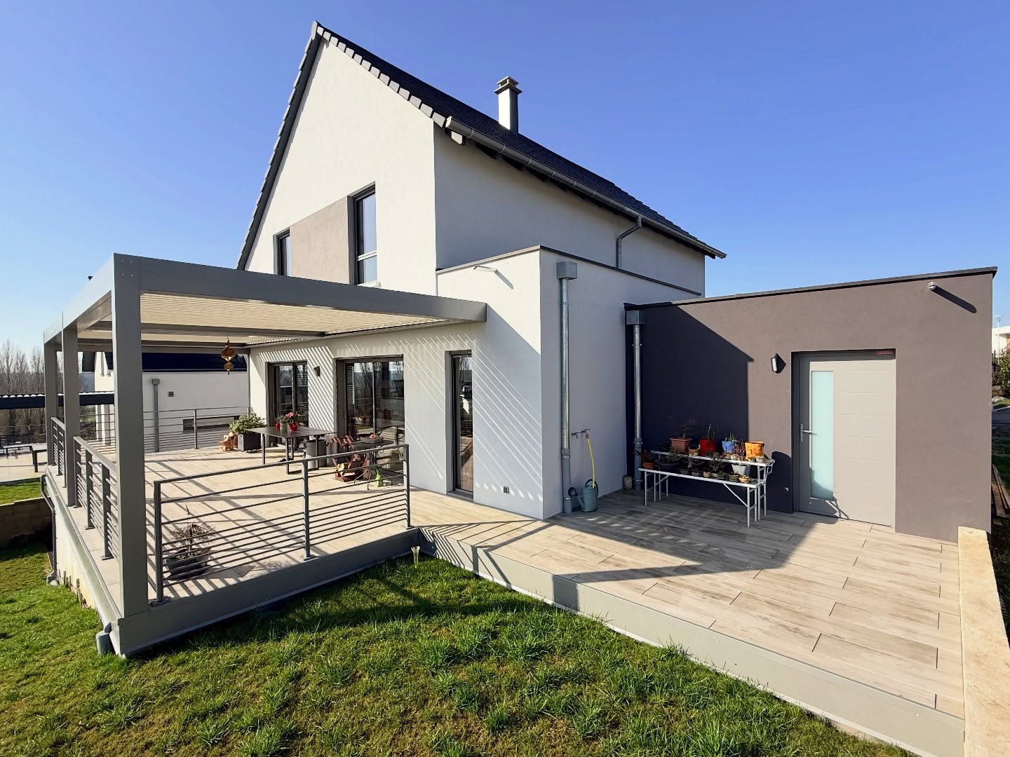 We trekken naar Buhl in de Bas-Rhin om dit prachtige terras van een moderne villa te ontdekken. Het doel was duidelijk: de minimalistische ruimtes van het huis bekleden met een warm materiaal dat het weidse uitzicht op het Elzasser landschap nog beter tot zijn recht laat komen.
