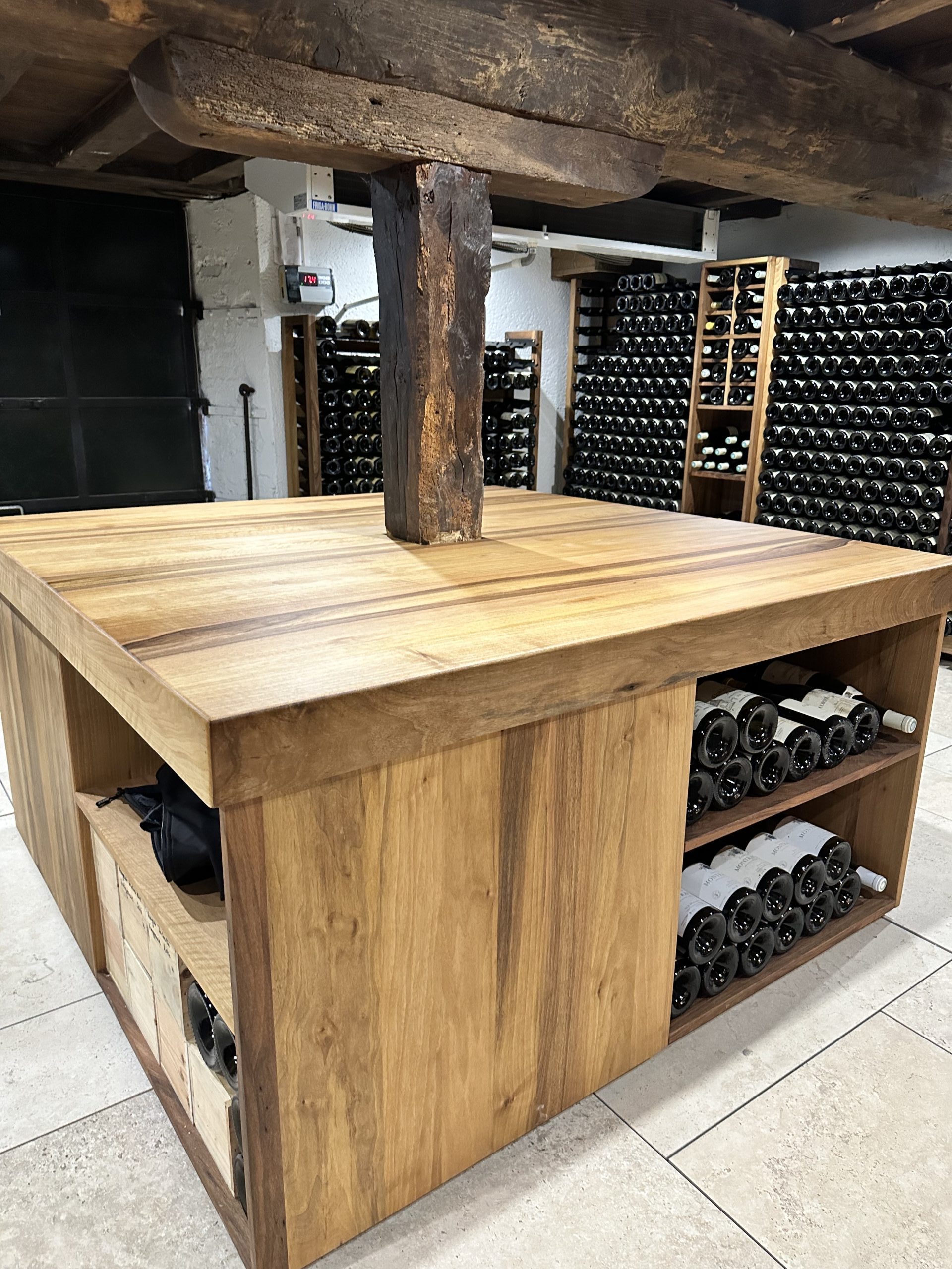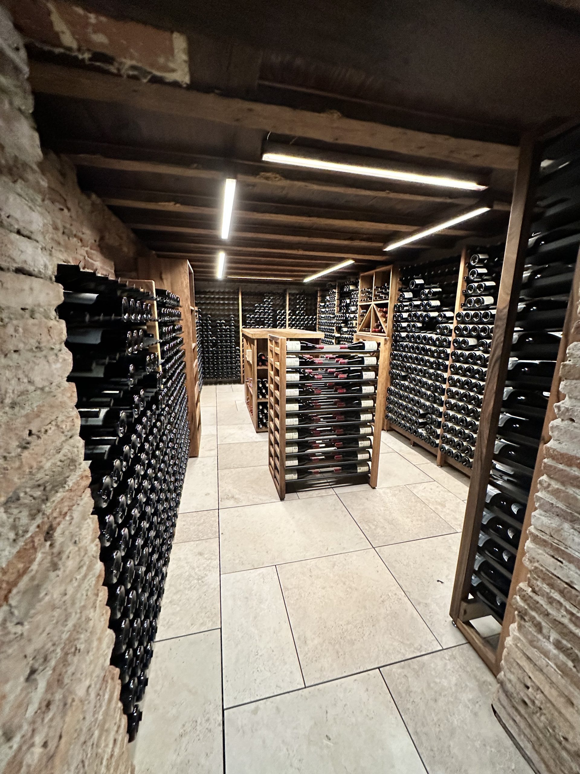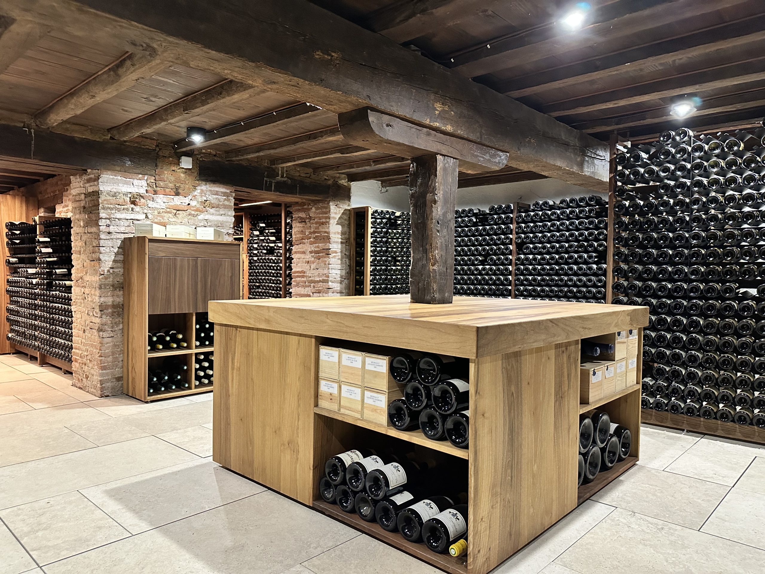 In de buurt van Toulouse heeft een particulier zijn wijnkelder ingericht als een functionele ruimte voor het bewaren en presenteren van flessen.