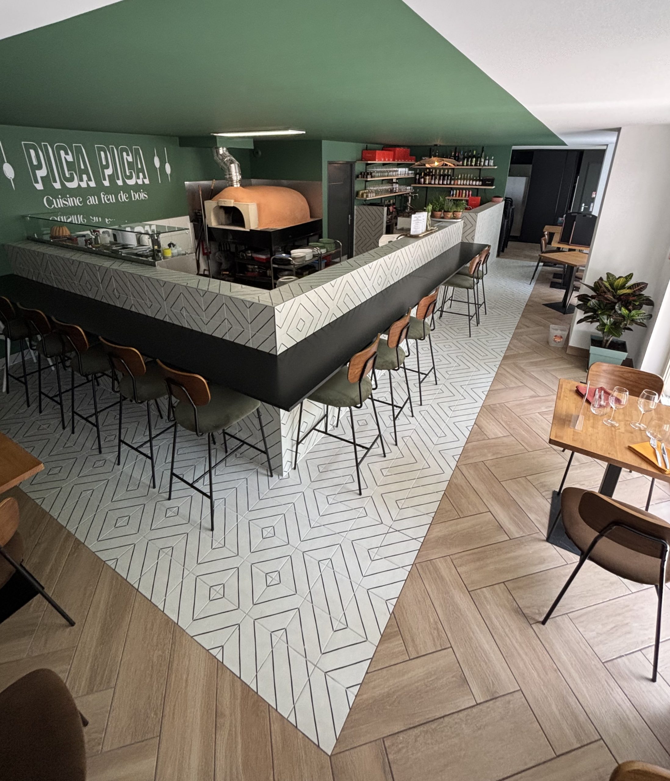 In La Roche-de-Glun onderging restaurant PICA PICA in 2025 een inrichting die bedoeld was om de ruimtes te structureren en tegelijkertijd een sterke visuele identiteit te creëren.