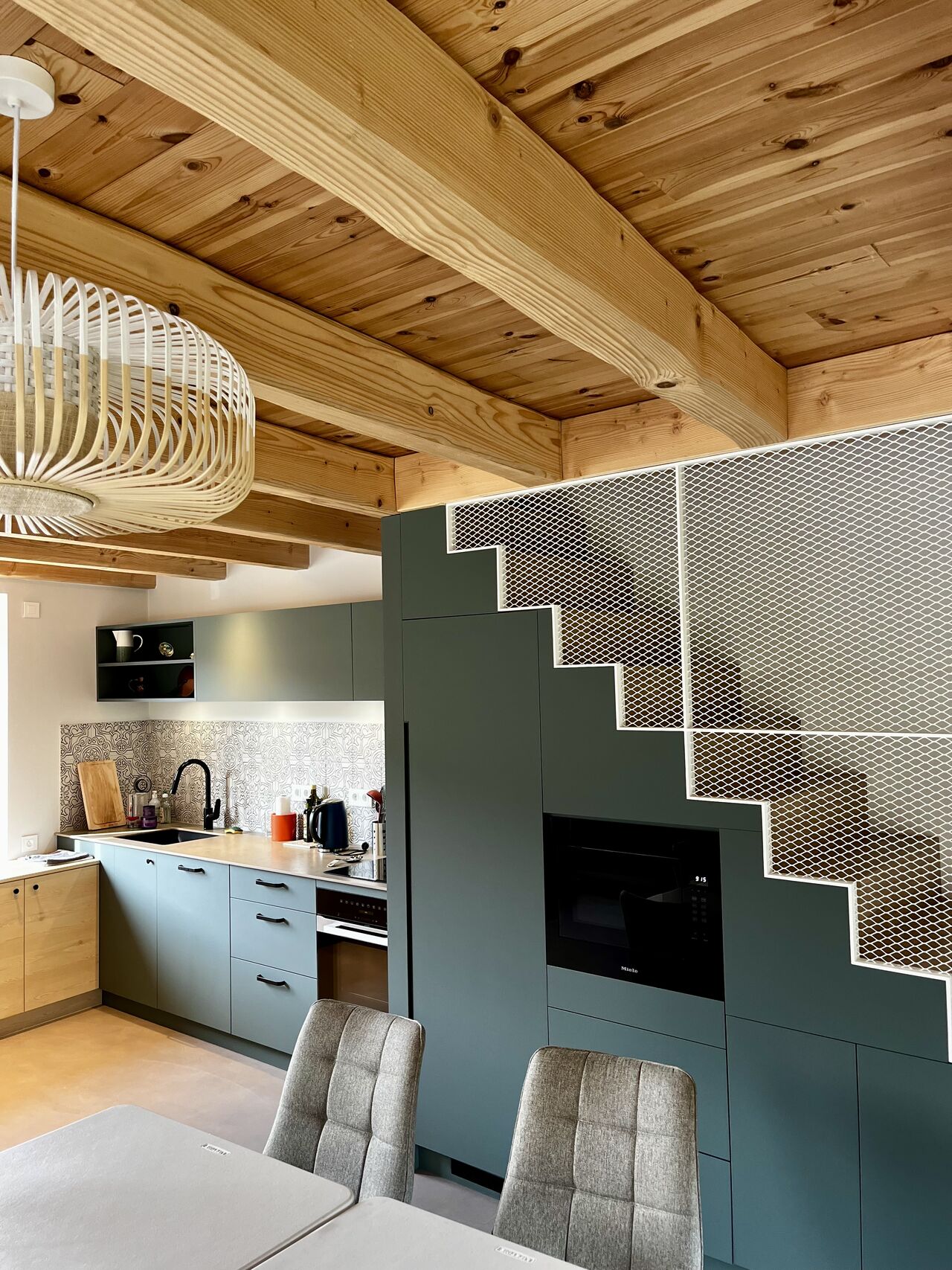 In deze renovatie van Chloé Bourdelain combineert de keuken authenticiteit en moderniteit in een gezellige en elegante sfeer.