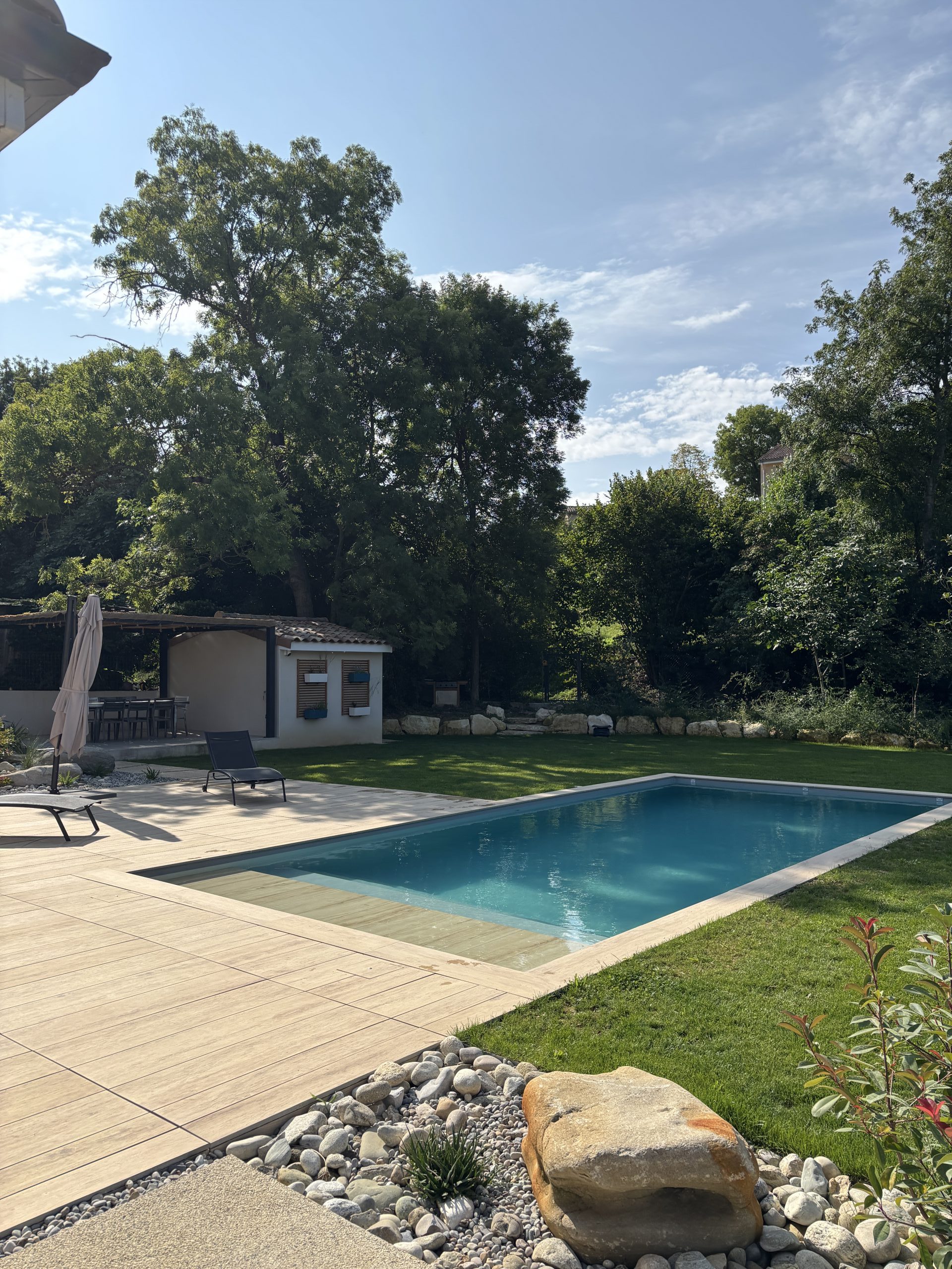 In de Drôme heeft Cédric Pierre Paysage in 2025 een complete buiteninrichting met een zwembad gerealiseerd, ontworpen als een functionele en gebruiksklare leefruimte.